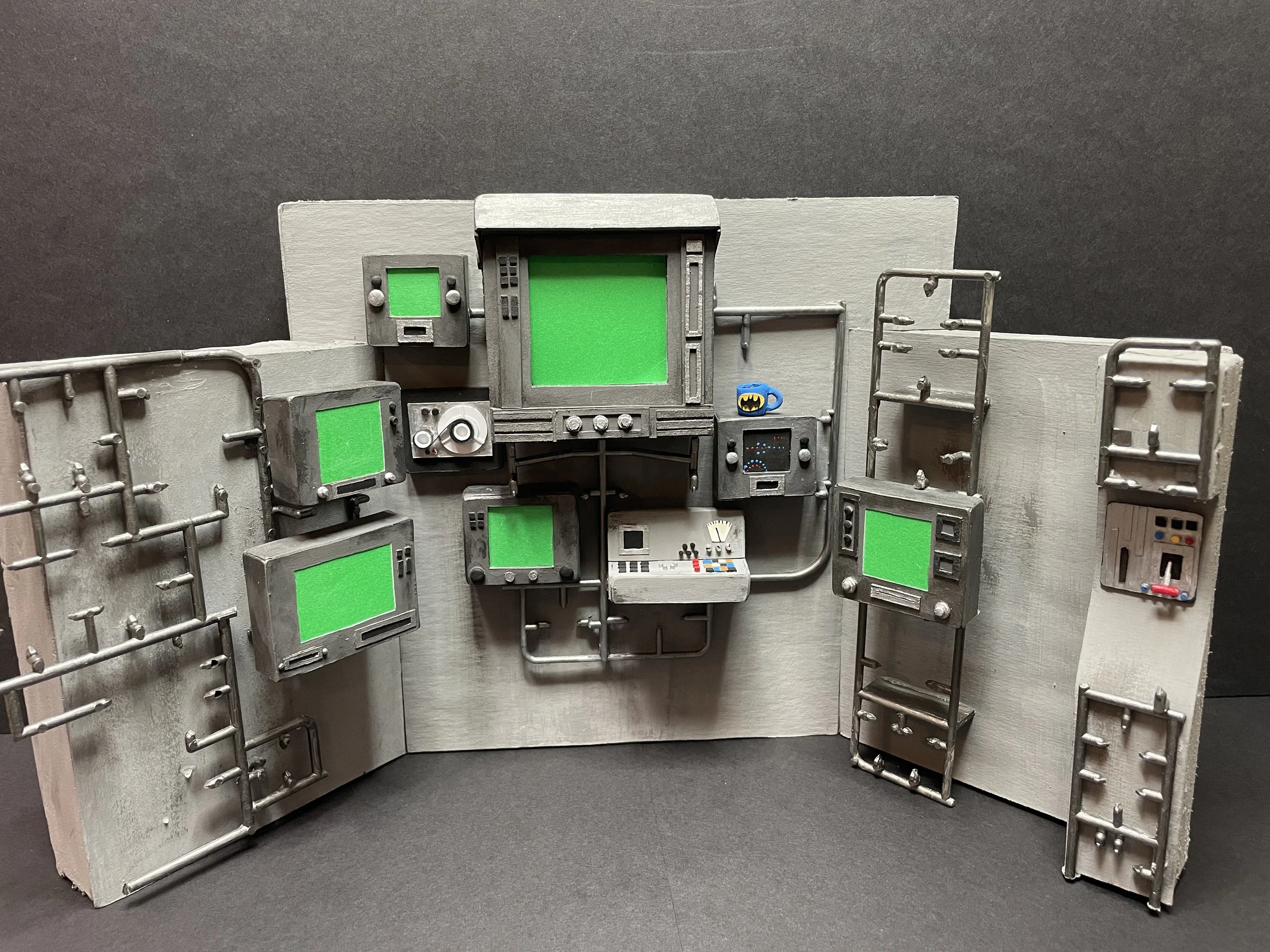 BATCOMPUTER for a DC Kids stop motion commercial. Foam, styrene plastic, and model kit sprues.